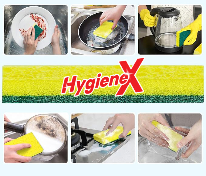 Discover HygieneX’s unique dual-action sponge that combines powerful scrubbing with gentle care, delivering efficient cleaning without scratching your dishes.